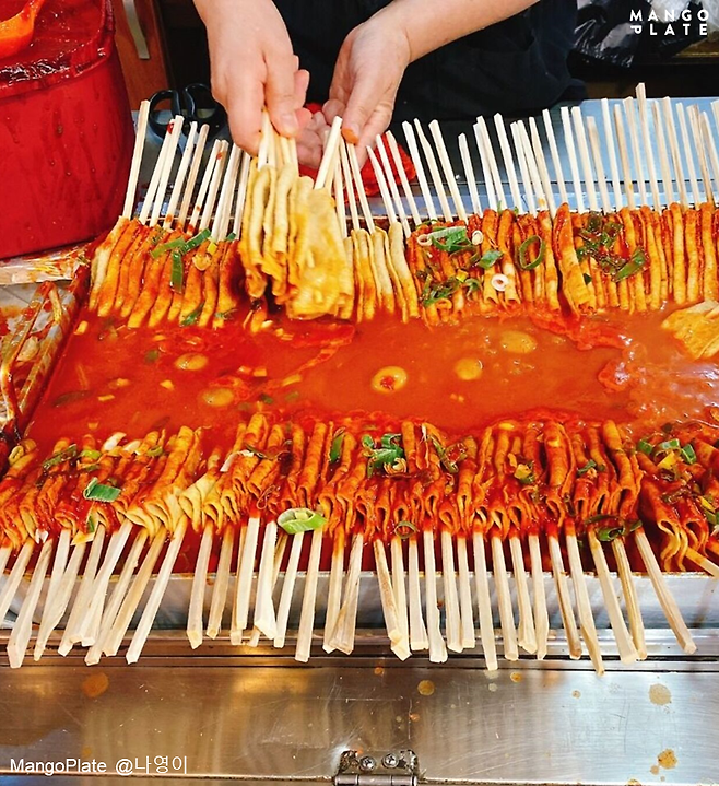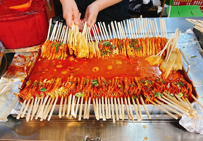 분식하면 역시 떡볶이를 빼놓을 수 없겠죠? 떡볶이는 빨간오뎅, 그리고 바삭한 정석적인 스타일의 튀김과 함께 먹으면 아주 잘 어울리는데요. 빨간오뎅과 마찬가지로 자극적이지만 쉽게 질리지 않은 묘한 매력을 지녔습니다. 고기가 땡긴다면 닭꼬치도 함께 먹는 것을 추천하는데요. 육질이 부드럽고 촉촉해 쫀득한 떡, 오뎅과 잘 어울리죠.