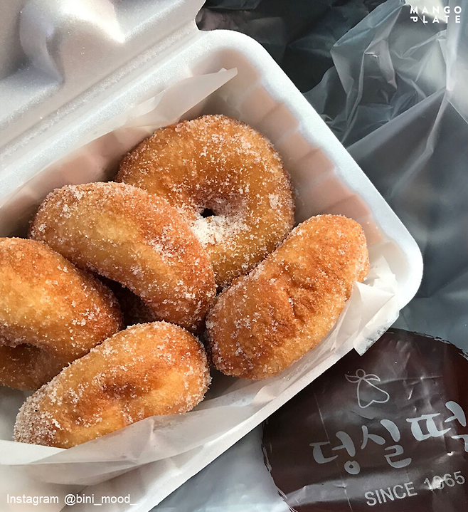 50년 전통의 수제 찹쌀떡과 도넛을 즐길 수 있는 <덩실분식>입니다. 메뉴로는 덩실찹쌀떡, 덩실링도넛과 덩실팥도넛이 있는데요. 방부제와 유화제를 넣지 않고 전통의 방식으로 만든 덩실찹쌀떡은 쭉쭉 늘어나는 쫀득하면서도 말랑말랑한 식감을 지녔습니다. 고소한 참기름 향에 과하게 달지 않은 은은한 달콤함과 살짝의 짭짤함을 지닌 팥소가 매력적이죠.