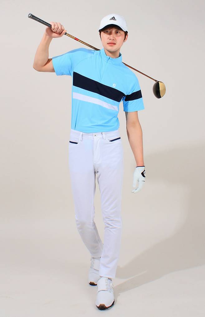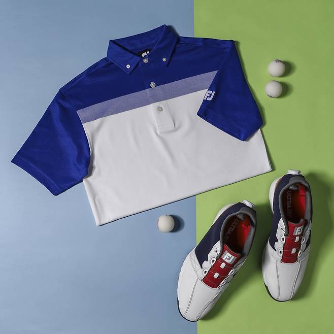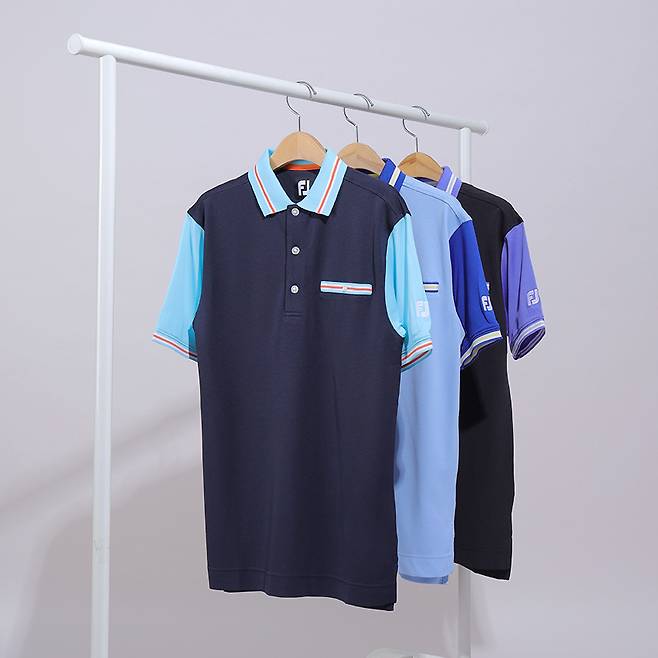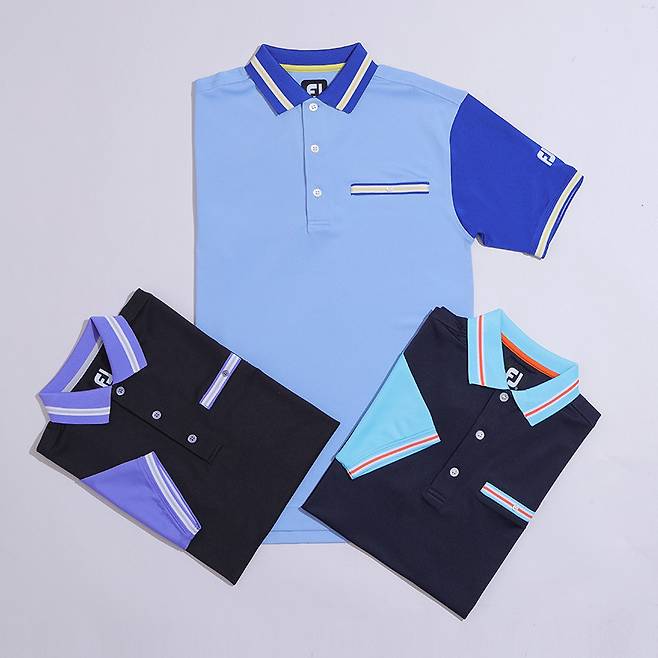 풋조이 컬러 블록 카라 반팔 티셔츠