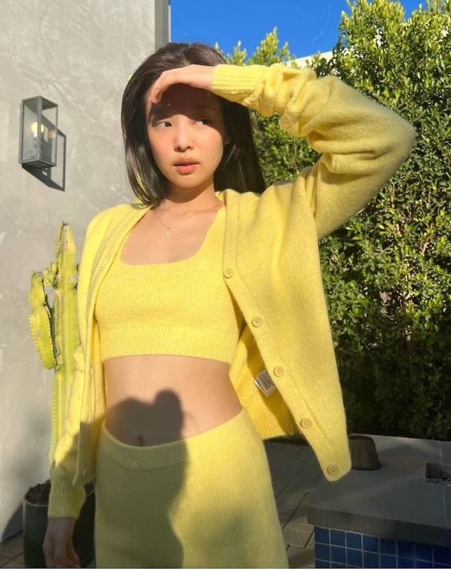 제니, 노란 크롭탑 입고 개미허리 노출~미국서 올린 근황샷