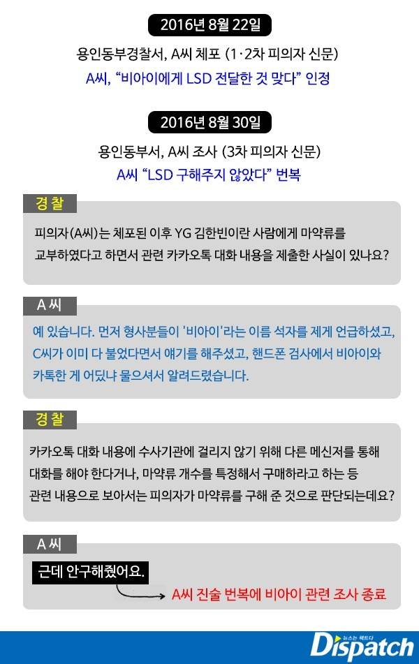 그러나 약 3년 간 처벌을 피했다. A씨는 지난 2019년 "2016년 8월, 경찰에 비아이에 대해 진술했다"면서도 "양현석의 회유와 협박으로 진술을 번복해야 했다"고 공익신고했다.