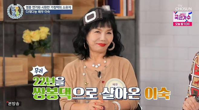 18일 방송된 TV조선 '알콩달콩'에는 배우 이숙이 출연해 이야기를 나눴다.