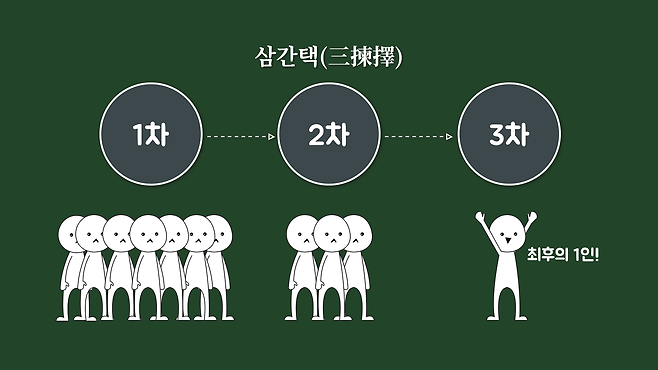 먼저 의빈(儀賓)이 되는 방법은 간택입니다. 왕비를 간택하는 것처럼 의빈 후보자를 삼간택(三揀擇)이라고 하는 세 차례의 절차를 거쳐 결정했습니다. 참고로 이러한 간택 절차는 태종 때부터 생겨난 것으로 이전에는 신하들과 논의하거나 왕이 결정했습니다. (*의빈(儀賓)을 부마(駙馬)라고 부르기도 했지만, 경국대전에 실린 조선 국왕 사위의 공식 명칭은 부마가 아닌 의빈이다.)