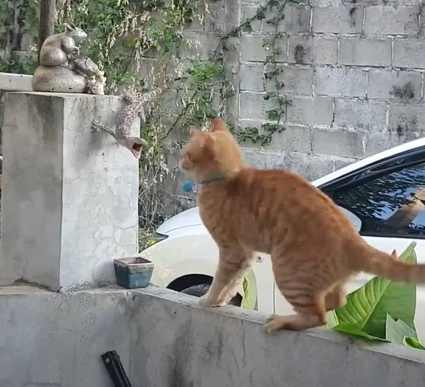 한적한 동네의 좁은 담벼락 위. 여기엔 지금 소리 없는 전쟁이 펼쳐지는 중입니다. 고양이 한 마리가 벽을 항해 발길질을 하고 있는데요. 자세히 보면, 벽에 도마뱀이 매달려 고양이의 움직임을 주시하고 있다는 것을 알 수 있습니다. 이내 레프트 훅으로 추가 공격을 날리는 고양이. 의외로 일방적인 싸움이 될 거 같은데요?
