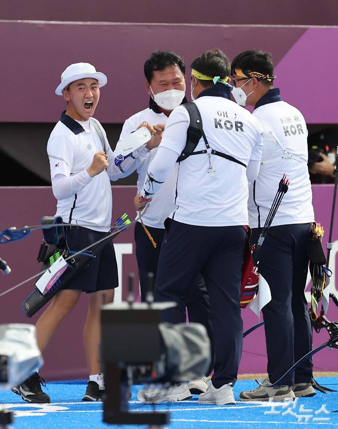 남자 양궁 대표팀은 26일 일본 도쿄 유메노시마 공원 양궁장에서 열린 도쿄 올림픽 양궁 남자 단체전 결승에서 대만에 세트스코어 6대0으로 승리했다.