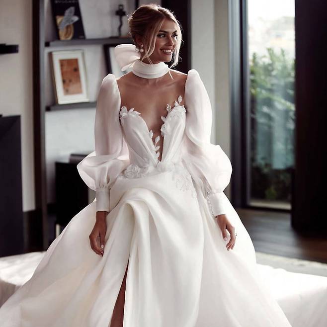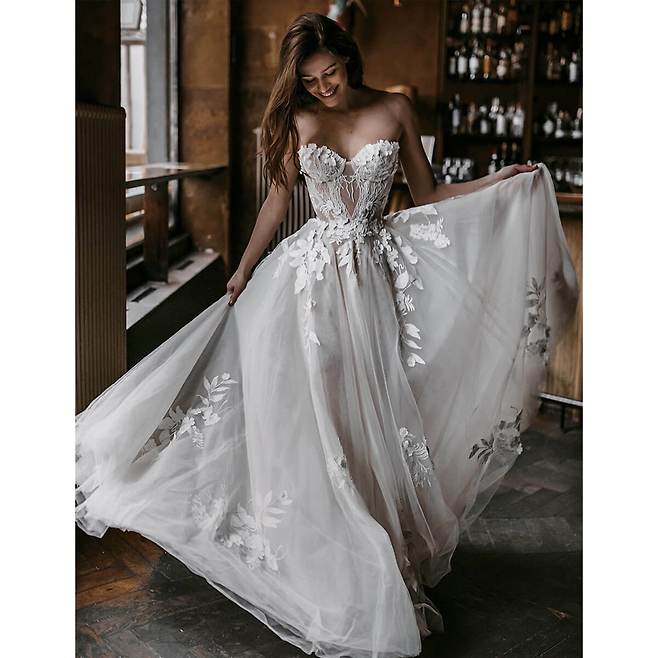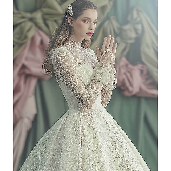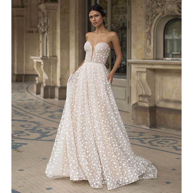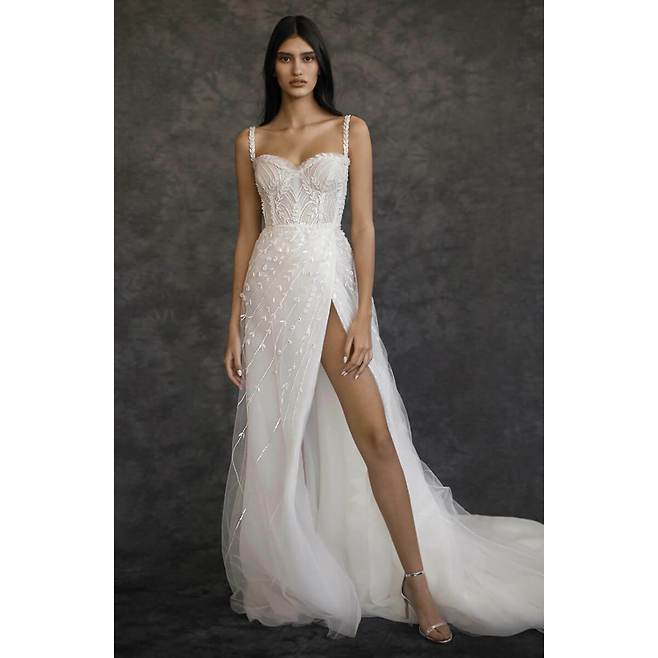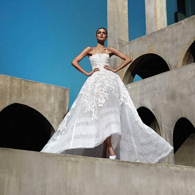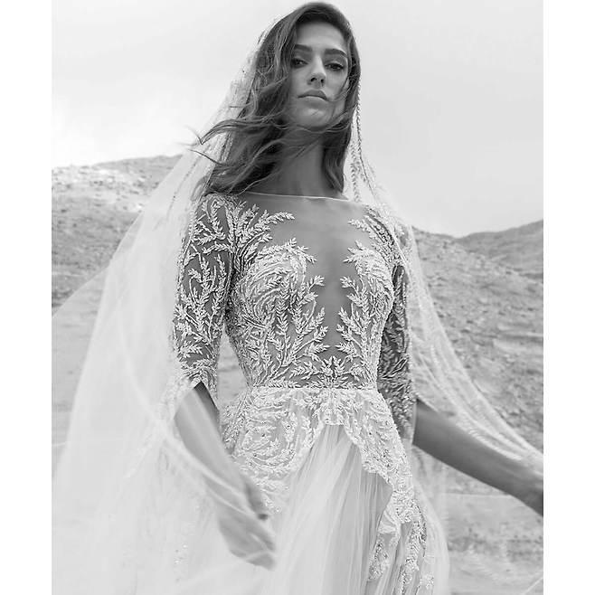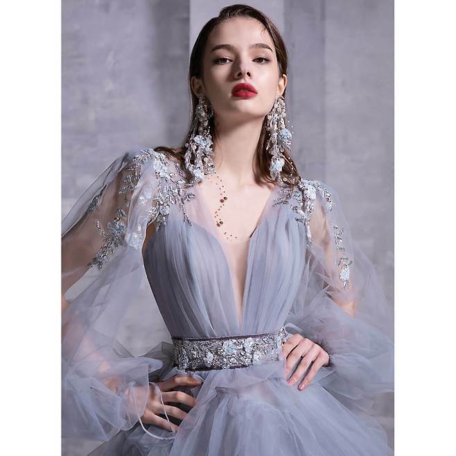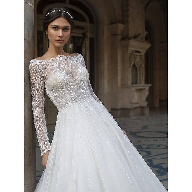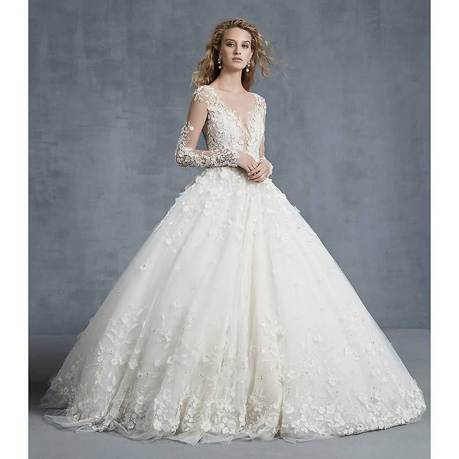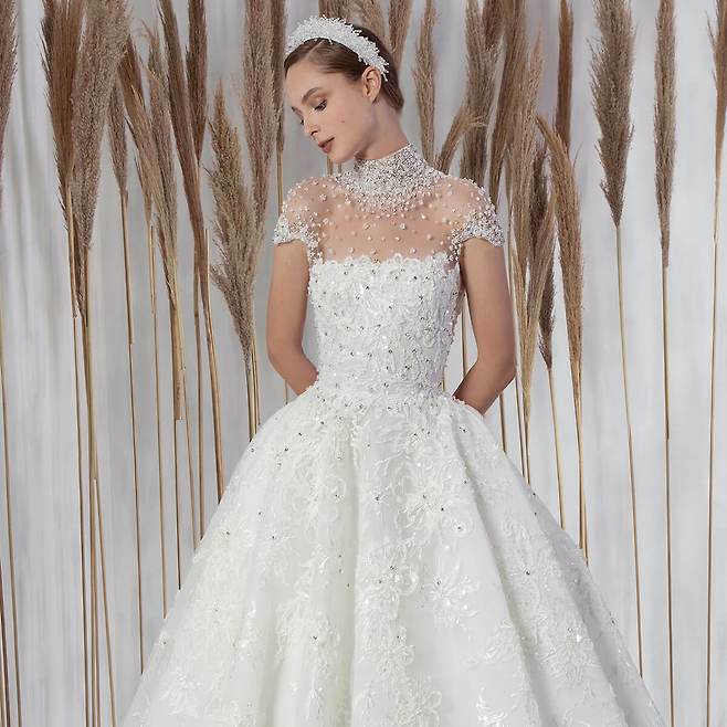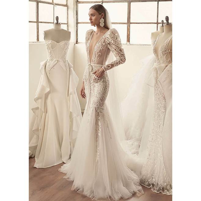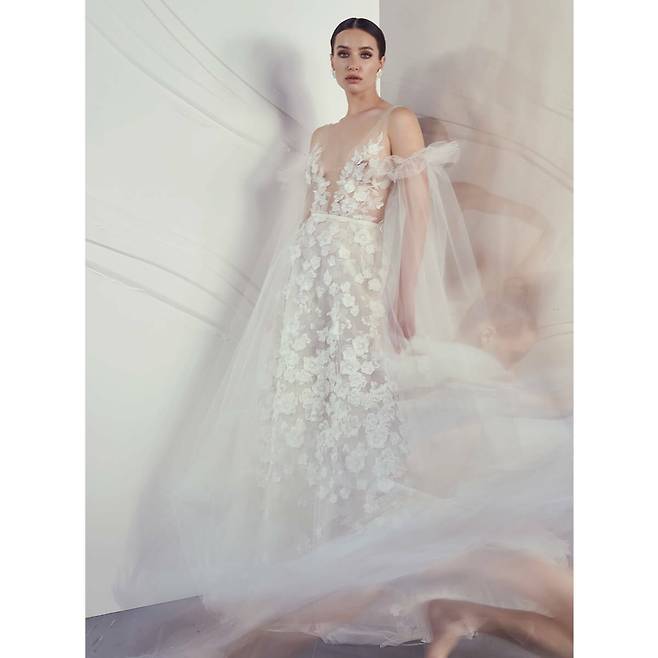 한 번 보면 잊히지 않는 마리벨르의 드레스는 이번 시즌에도 정교한 장식, 레이스 디테일로 화려함을 강조한다. 가슴 선부터 풍성한 스커트 라인까지 흩뿌린 듯한 플라워 장식으로 로맨틱한 분위기를 자아내는 갈리아 라하브의 웨딩드레스, 과감한 라인과 풍성한 셔링이 독특한 모니크 륄리에 드레스가 눈길을 사로잡는다.