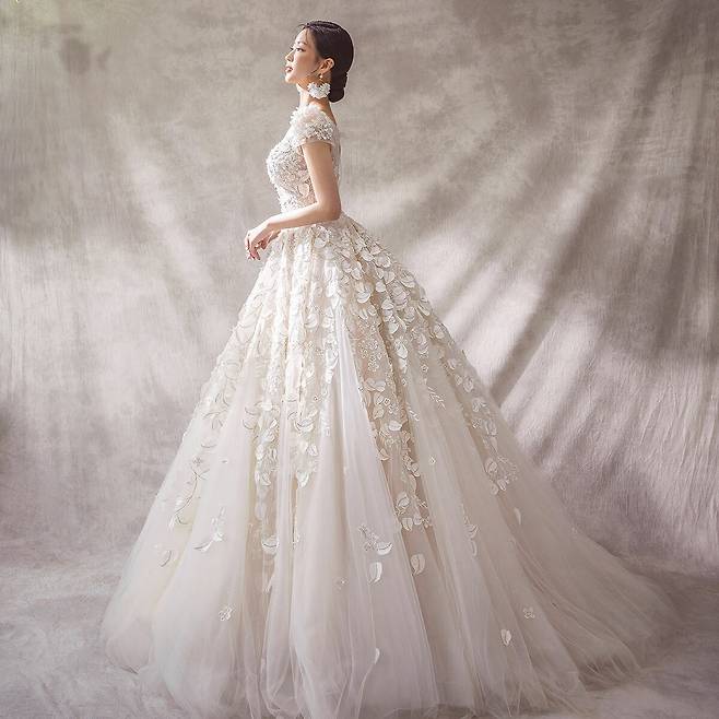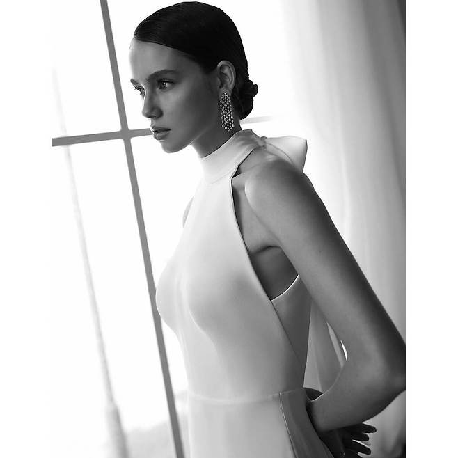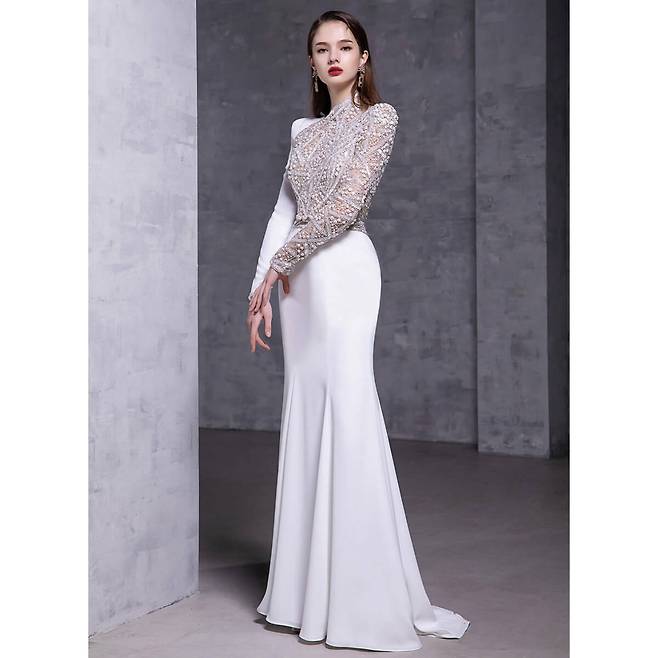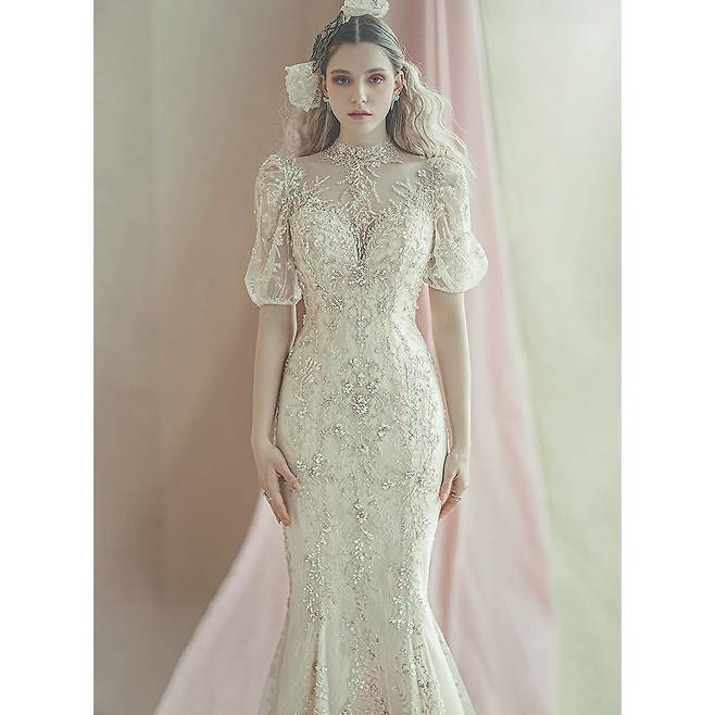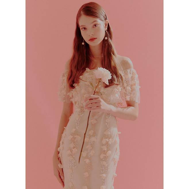 최명 디자이너가 이끌어가는 로자스포사는 독특하고 개성 있는 스타일의 드레스로 사랑받고 있다. 로자스포사의 이번 시즌 드레스는 풍성하고 부드럽게 떨어지는 라인으로 여성스러움을 극대화한 것이 특징이다. 잘록한 허리 라인과 은은한 비즈 장식이 로맨틱한 무드를 완성하는 드레스는 본식뿐 아니라 촬영과 애프터 파티에서도 빛을 발할 것이다.
