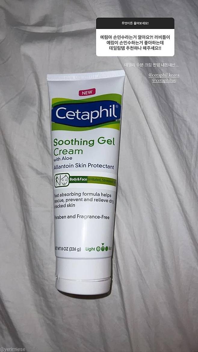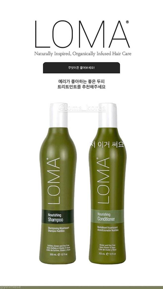 공답요정 예리가 얼마 전 자신의 인스타그램 스토리를 통해 리얼 뷰티템들을 공개했다. 평소에도 패션, 뷰티 할 것 없이 관심이 많은 그녀답게 추천해 준 뷰티템들 역시 남달랐다. 가장 궁금한 건 역시 향수! 겨울과 어울리는 제품으로 예리가 추천한 건 톰포드 뷰티 화이트 스웨이드. 관능적이고 섹시한 첫 향과 달리 포근한 잔향이 반전미를 선사하는 제품으로 이미 많은 이들의 겨울 향수템으로도 언급되고 있는 레전드템! 또, 잦은 메이크업과 염색을 하는 프로 아이돌답게 스킨케어는 진정과 보습을 한 번에 해결해 줄 세타필 수딩 젤 크림을. 두피와 모발에도 자극을 최소화해 줄 유기농 헤어 케어 제품인 로마 너리싱 샴푸와 컨디셔너를 추천하며 러비들의 궁금증을 해결해줬다.