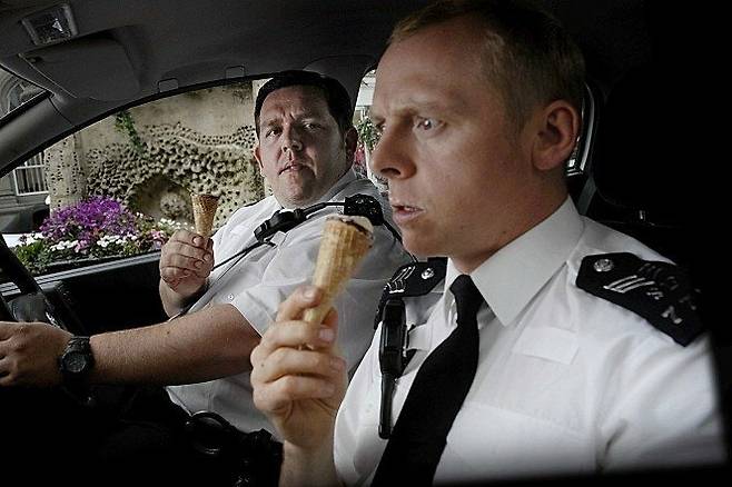 영화는 너무 잘난 나머지 동료들의 미움을 산 엔젤(사이먼 페그)와 어딘지 좀 모자라 보이는 경찰 대니(닉 프로스트)가 합작하여 샌드포드 마을의 진실을 파헤치는 이야기다. 지나칠 정도로 이상적인 샌드포드의 평화 뒤엔 비밀이 숨겨져 있다는 이 설정에는 당시 미국에서 발표된 테러대책법에 대한 비판이 녹아있다. 테러대책법은 전화와 이메일 등을 사법집행기관에서 감시할 수 있는 권한을 대폭 강화하는 법으로, 개인정보 침해는 물론 자유와 인권까지 위협할 수 있었다. “공공선을 위해서”라면 희생을 감수해야 한다는 태도가 위험한 것임을 그는 버디 캅 무비 패러디를 통해 세련되게 보여준다. 사회비판 메시지를 던지는 코미디 영화의 가장 좋은 예시.