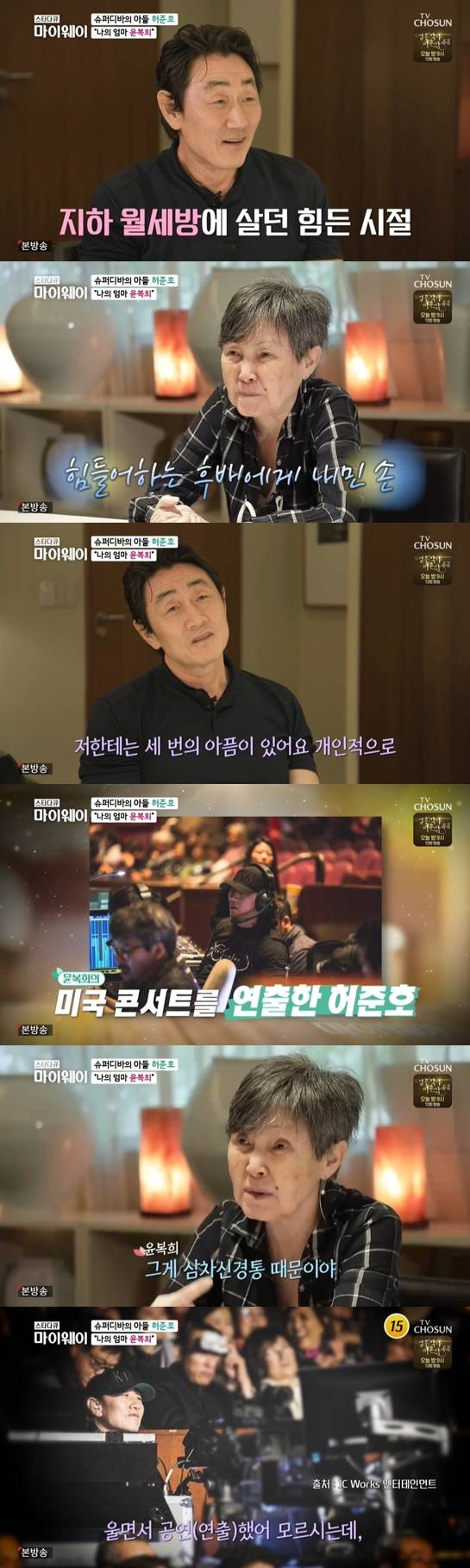 또 허준호는 "엄마는 (신경통 때문에) 너무 아프셔서 아무것도 못 드셨다. 이틀 동안 밥도 못 드시고 두 시간 반 동안 혼자 공연을 하시는데 나도 콘솔에 앉아서 울면서 연출했다"고 덧붙였다.