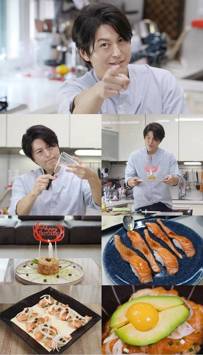 류수영이 첫 번째로 선보인 요리 ‘연어 타르타르’는 그야말로 감탄을 자아냈다. 레스토랑에서나 나올 법한 고급스러운 ‘연어 타르타르’를 푸짐한 양으로 간단하게 만들어낸 것. 류수영은 간편 소스로 고급스러운 연어 타르타르의 맛을 낸 후, 집에 있는 간단한 도구로 모양까지 잡았다. 그렇게 근사한 연어 타르타르 요리가 완성되자 류수영은 갑자기 초를 꺼낸 뒤 연어 타르타르에 꽂고 생일 축하 노래를 불러 모두를 깜짝 놀라게 했다.