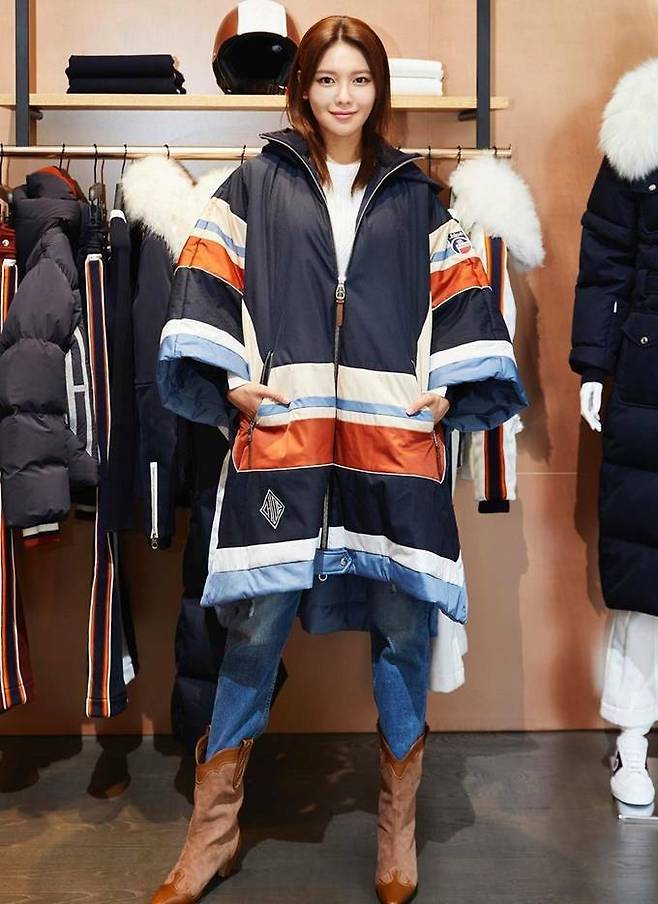 7. 소녀시대 수영은 11월 8일 데님 팬츠에 케이프 스타일의 후드 롱 패딩을 입고 스포티하면서도 스타일리시한 패션 센스를 드러냈다.