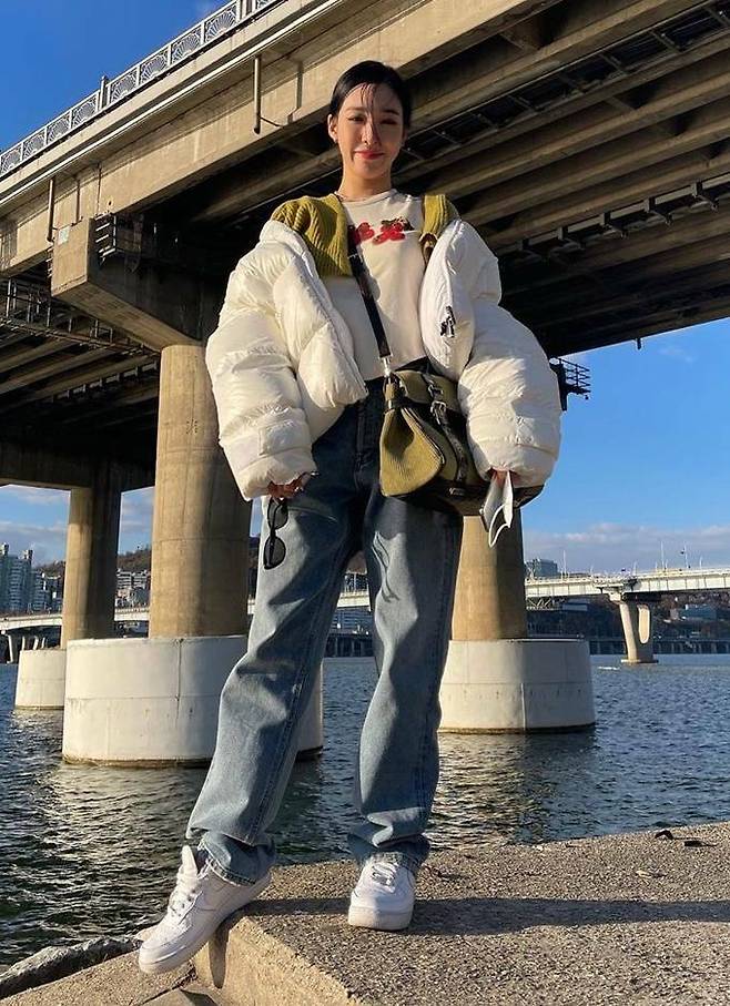 2. 소녀시대 출신 가수 티파니 영은 11월 14일 화이트 후드 크롭트 패딩과 복고풍의 데님 팬츠로 스트릿 감성을 더한 패딩룩을 선보였다.