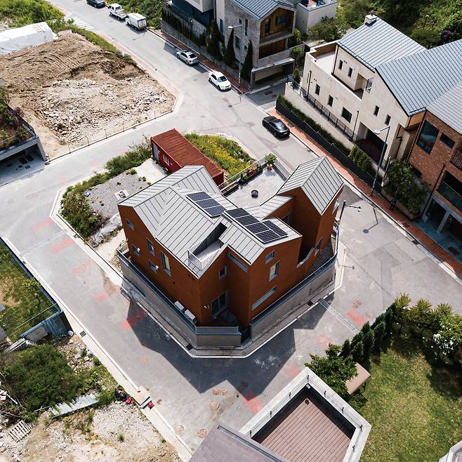 벽돌집이라고 하면 다소 투박한 이미지를 떠올리는데 여유재는 반듯하고 매끈하다. 외장재로 붉은 벽돌을 선택한 이유를 물으니 아내 정인경 씨는 어떤 여성 건축가의 이야기를 꺼냈다.