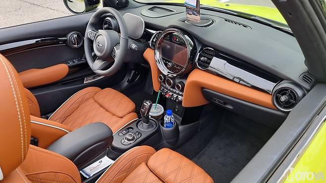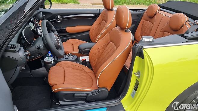 미니 컨버터블의 앞좌석은 탄탄한 착좌감을 지닌다. 그러면서도 탑승자의 신체를 탄탄하게 지지해 주는 구조로 설계되어 격렬한 주행 상황에서도 든든하다. 시승차인 쿠퍼 S 컨버터블의 좌석은 질 좋은 가죽으로 마감되어 감성품질도 높다. 앞좌석은 모두 수동 레버로 조절되며, 각 3단계의 열선 기능을 제공한다. 뒷좌석의 경우에는 미니 3도어 모델과 비슷한 구성으로, 성인이 타기에는 다소 무리가 있다.