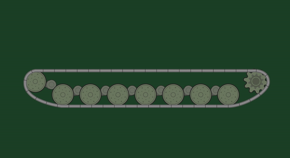 무한궤도 차량의 구성은 복잡합니다. 여기서는 기동륜과 유동륜, 보기륜, 서스펜션 정도만 간략히 알아볼 건데, 먼저 기동륜(Sprocket)은 궤도에 동력을 전달해주는 장치입니다.
