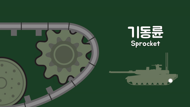 톱니 형상으로 되어 있고, 파워팩(엔진+변속기)에서 나오는 동력이 차체 좌·우측에 있는 종감속기로 전달되며 종감속기와 연결된 기동륜이 구동하면서 궤도를 회전시킵니다.
