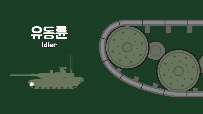 유동륜(Idler)은 동력이 전달되지는 않으며 궤도가 매끄럽게 꺾이도록 도움을 주는 장치입니다.