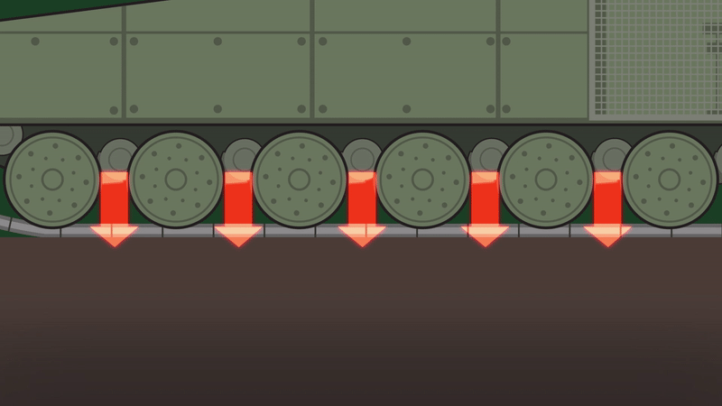 먼저 차바퀴 등이 지면에 접할 때의 압력인 접지압을 크게 낮출 수 있습니다. 무한궤도 차량을 보면 주로 오프로드(비포장도로)에서 주행하는 경우가 많습니다. 이때 차량이 움직이려면 작용 반작용 법칙에 따라 차량의 구동력만큼 지면이 반력을 주어야 합니다.