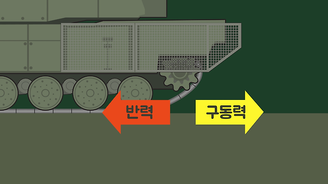 먼저 차바퀴 등이 지면에 접할 때의 압력인 접지압을 크게 낮출 수 있습니다. 무한궤도 차량을 보면 주로 오프로드(비포장도로)에서 주행하는 경우가 많습니다. 이때 차량이 움직이려면 작용 반작용 법칙에 따라 차량의 구동력만큼 지면이 반력을 주어야 합니다.