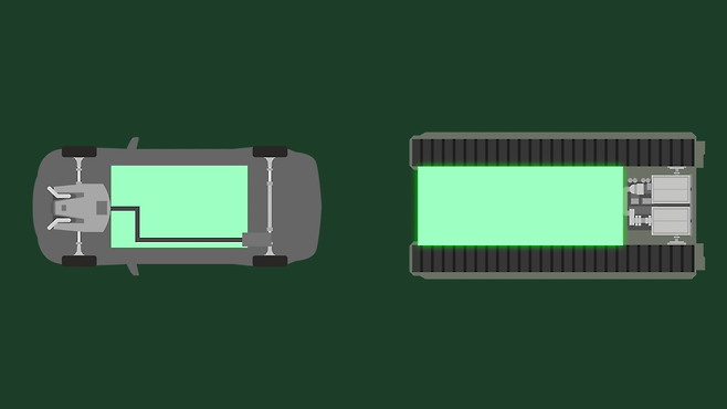 이외에도 공간 활용성 측면에서 차륜 차량보다 유리합니다. 무한궤도 차량은 복잡하게 구성되어 있어서 내부 공간이 없어 보입니다. 그런데 조향 방식에 있어서 차륜 차량과 큰 차이가 있기에 오히려 유리합니다.