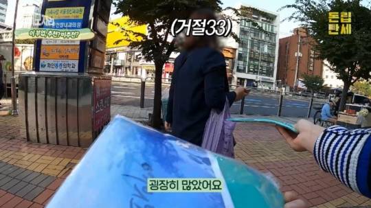지하철역 같은 유동인구가 많은 거리에는 어김없이 전단지를 배포하는 사람들이 자리하고 있습니다. 전단지 부업을 하는 분들은 전단지가 수북이 쌓인 가방을 멀찌감치 두고 지나가는 사람들에게 꺼내서 한장씩 나눠주곤 하는데요. 그냥 지나치는 사람, 받아가는 사람, 그리고 받아서 버리는 사람 등 반응도 제각각입니다.