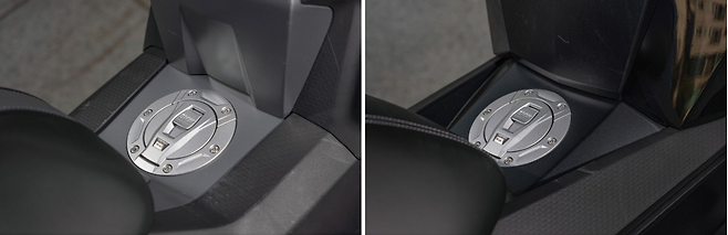기본 시트 높이는 775mm이다. 키 160~185cm 정도의 라이더가 편하게 탈 수 있다. 단 시트 폭이 넓은 편이라 키 175cm 이하의 경우 평지에서 양쪽 다리를 모두 땅에 편하게 내려놓기 어렵다. 폭이 넓은 시트는 텐덤 라이더에게 유리하다. 살짝 기울어진 일체형 시트 디자인으로 뒤쪽 라이더가 장시간 편하게 앉을 수 있다. 앞 열선 시트와 열선 그립이 기본이고, 3단계로 조절이 가능해 한겨울에도 찬바람 맞으며 탈만하다. 스마트키 시스템 덕분에 키를 꼽지 않아도 시동을 걸고, 트렁크나 주유구를 조작할 수 있다는 것도 장점이다. 대시보드 양쪽에 원형 버튼을 누르면 글러브 박스가 살포시 모습을 드러낸다. 오른쪽에는 안쪽에 USB 포트가 기본으로 달려서 비오는 날도 안전하게 스마트폰 충전이 가능하다.