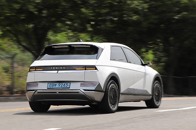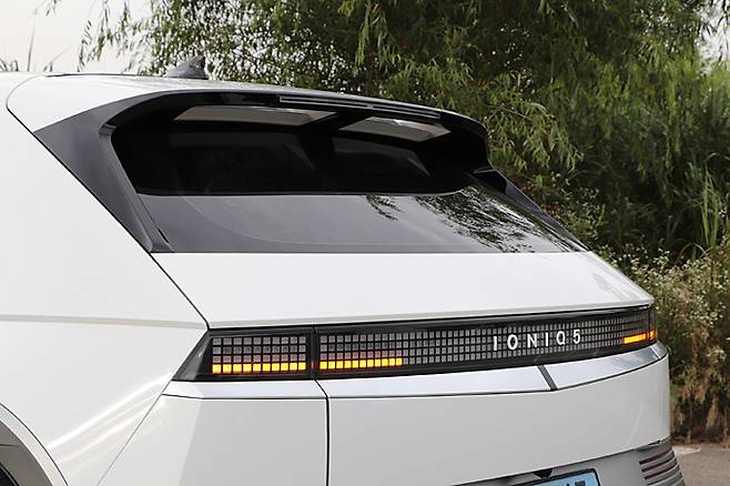 아이오닉5는 45년 전의 포니를 모티브로 했다고 하는데 실제는 디테일에서 파격적인 요소가 많다. 무엇보다 앞 얼굴에서 직사각형 LED 헤드램프가 생경하다. 이는 선대 아반떼의 삼각형 헤드램프보다 더 전위적이다. 그런데도 어색하지 않다. 현행 아반떼의 사이버틱함이 판매 대수를 올리는 요인이라는 것은 그만큼 소비자들이 변화에 익숙해졌다는 말일 수도 있고 전체 스타일링과 유기적으로 어울리기 때문이라고도 할 수 있다.