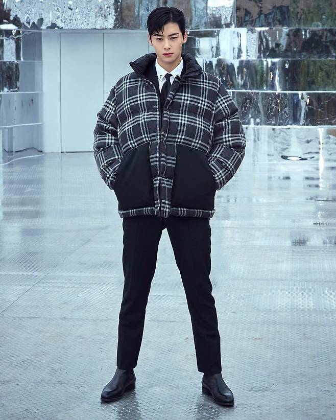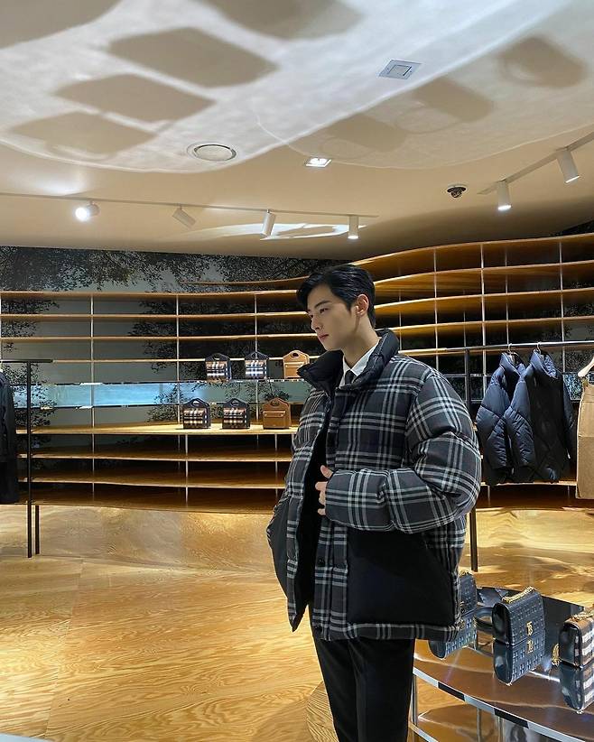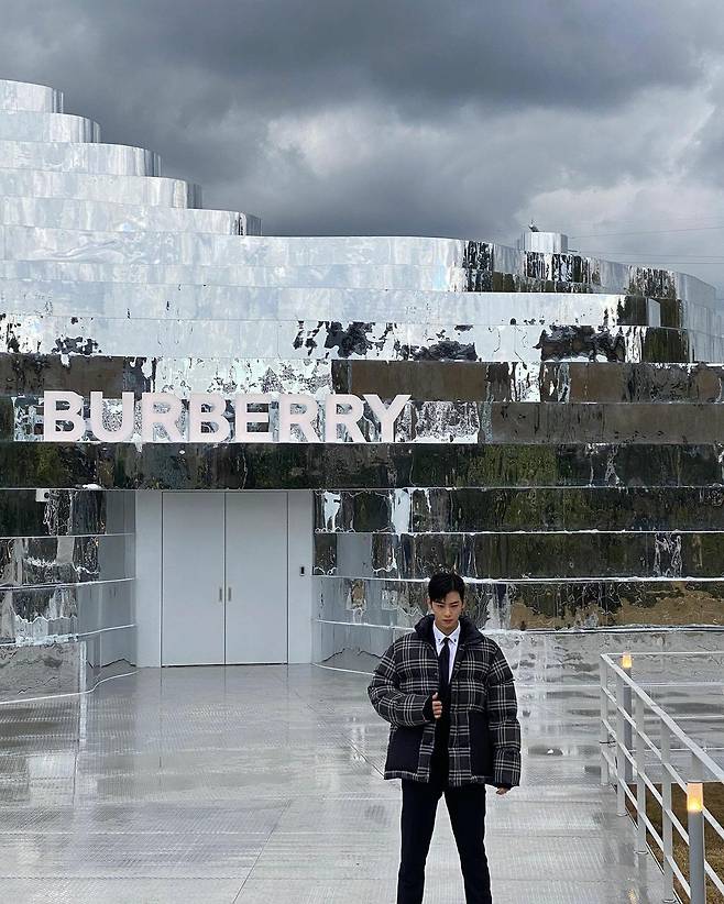 버버리의 앰버서더 차은우의 방문 모습이에요.