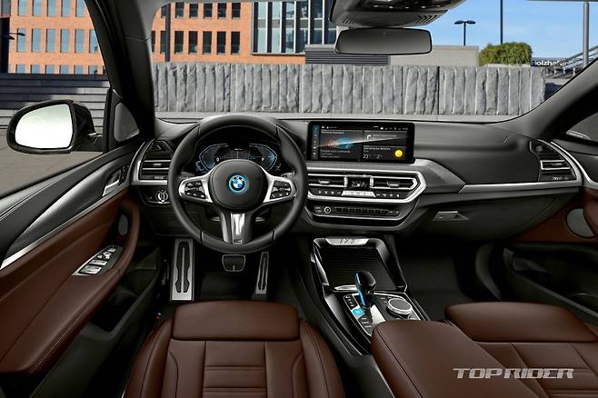 후면부 테일램프는 입체감이 강조됐다. 신형 iX3는 M 스포츠 패키지가 기본화돼 전면부 및 후면부 범퍼는 기존보다 공격적인 이미지다. 공기역학적으로 디자인된 19인치 또는 20인치 휠이 제공된다. 실내에는 12.3인치 디지털 계기판과 12.3인치 터치 디스플레이가 기본이다.