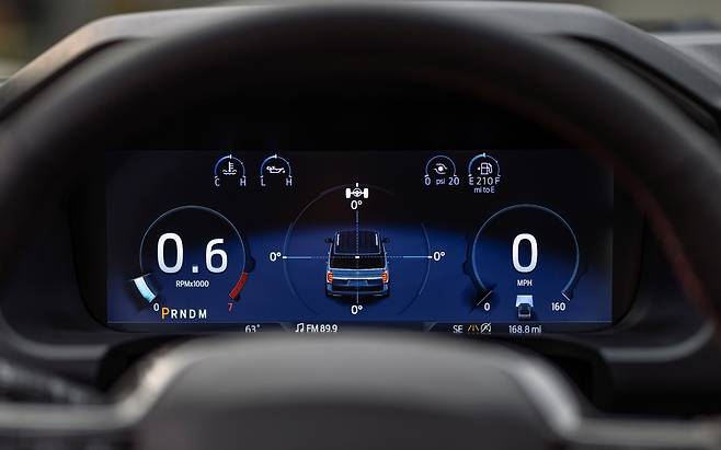 포드의 최신 운전자 주행 보조 시스템, ‘블루 크루즈 3(BlueCruise3)’도 심었다. 정차 및 출발과 차선 중앙 유지, 속도 표지판 인식까지 해낸다. 별도의 카메라로 운전자 시선을 감시해 집중력을 체크하기도 한다. 아날로그와 디지털을 조합했던 계기판은 12.4인치 풀 디지털 디스플레이로 신분상승했다. 주행 속도와 내비게이션, 차체 기울임 각도 등 수많은 정보를 띄운다.