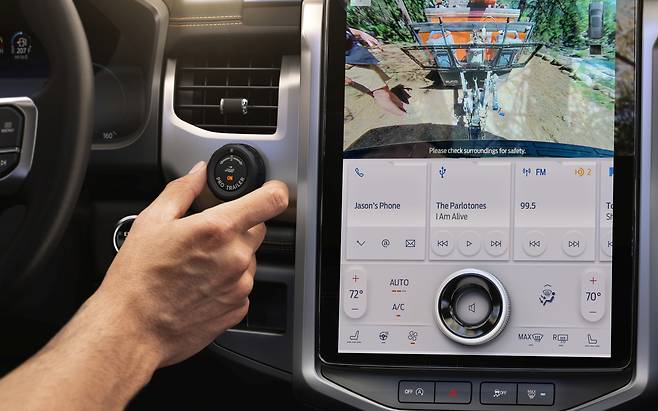 실내 중앙 모니터는 두 가지. 기본형은 12인치 가로형 화면이다. 구형보다 4인치 키워 각종 아이콘이 더 선명하다. 세로형 15.5인치 디스플레이도 마련했다. 머스탱 마하-E를 통해 처음 선보인 모니터로, 복잡한 공조 장치 버튼까지 모조리 삼켰다. 오디오 볼륨을 조절할 원형 다이얼만 하나만 남겼다. 각각 SYNC 4와 SYNC 4A 인포테인먼트 시스템이 들어간다. 무선 업데이트는 포드 ‘파워 업(Power Up)’ 소프트웨어가 맡는다.