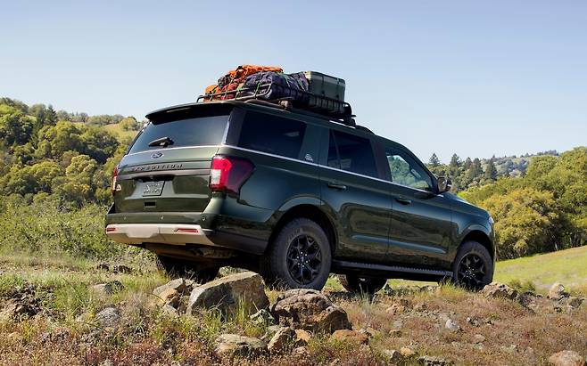 익스페디션 팀버라인은 익스플로러 팀버라인에 이어 등장한 두 번째 오프로드 전용 트림이다. 지상고를 20㎜ 올려 269㎜까지 띄우고, 33인치 굿이어 랭글러 AT 타이어를 끼웠다. 덩달아 접근각과 이탈각도 늘어나 거친 지형에 보다 쉽게 접근할 수 있다. 보닛 아래에는 V6 3.5L 가솔린 에코부스트 엔진을 얹어 최고출력 446마력 최대토크 70.8㎏·m를 낸다.
