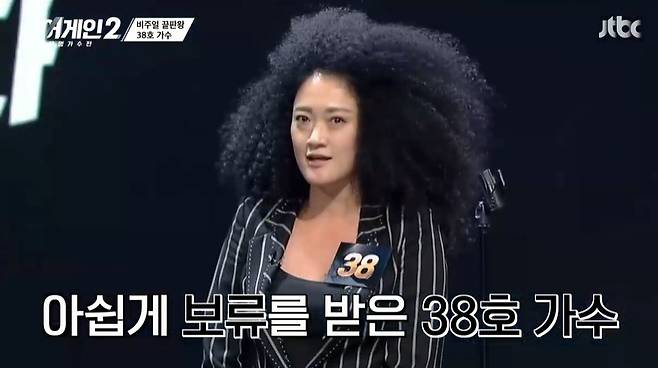 38호 가수는 재즈 보컬리스트. 이날 스스로를 ‘미녀 재즈가수’라 소개한 38호 가수는 ‘싱어게인2’에 지원한 이유에 대해 “재즈 보컬리스트 중에 ‘이런 목소리를 가진 사람이 있다’고 얘기하고 싶었다. ‘나라는 사람이 여기 있다’고 말하고 싶어서 용기를 냈다”고 밝혔다.