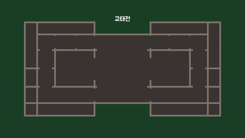 이해를 돕기 위해 교태전의 평면도를 봐주길 바랍니다. 구체적으로 순서를 설명해보면 합궁을 하기 위해 왕이 동온돌방에 옵니다. 그러면 나이가 많은 지밀상궁(대령상궁, 대전(大殿)의 좌우에서 잠시도 떠나지 아니하고 임금을 모시던 상궁)이 서온돌방에서 대기 중인 왕비나 후궁 또는 궁녀를 동온돌방으로 인도합니다. (*음양설에 따르면 동온돌방은 양(陽)의 기운을 띠므로 합궁은 동온돌방에서 이루어졌다고 합니다.)