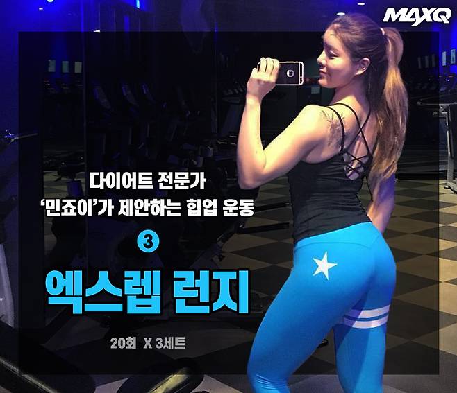 엑스렙은 동작 중 자극이 강한 구간만 움직이는 것을 말합니다. 기본 런지에서 자극이 강한 부분만 반복해서 운동해 보세요.