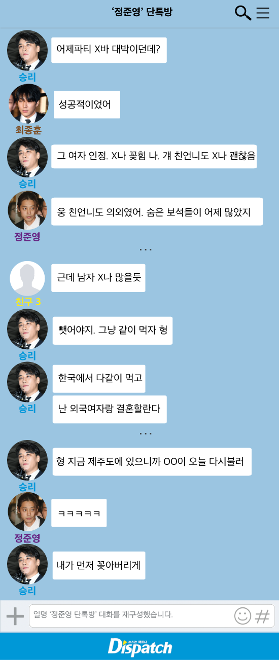 정준영 : A는 B도 먹고 나도 먹은 년이다 ㅋㅋ