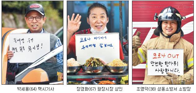 높은 단계의 거리두기 상황이 장기화하면서 가족·친지와 단절된 시간도 길어져 가고 있습니다. 그렇지만 이렇게 묵묵히 자신의 자리를 지키는 이들이 있어서 우리는 힘겨운 시기를 버텨낼 힘을 얻습니다. 이들이 스케치북에 정성껏 적은 글귀와 거기에 담긴 마음이 사랑하는 가족들에게 오롯이 가 닿기를 바랍니다.