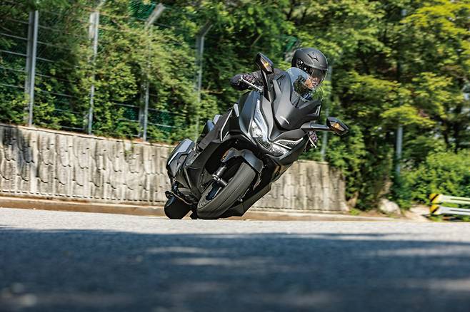 서스펜션은 충격의 흡수나 차량의 자세제어면에서 아주 훌륭했다. 특히 리어서스펜션 움직임이 상당히 인상적이었다. 엔진과 변속기, 그리고 뒷바퀴까지 스윙암에 포함된 ‘유닛 스윙암’ 방식은 엔진이 무거울수록 그 관성이 남아 리어 서스펜션으로 극복이 힘든 한계가 분명 존재한다. 하지만 포르자 350은 이 한계 속에서도 가장 잘 조율된 움직임을 보여줬다. 칭찬하고 싶은 부분이다. 제동력은 조금 아쉬운 느낌이 들었다. 절대 제동력은 크게 부족하지는 않지만 레버의 초기응답이 조금 둔하고 무르게 느껴졌다. 하지만 급제동 시 비상등이 고속점멸하며 후방차량에 경고를 보내는 긴급제동신호는 좋았다. 위급 상황에서 사고를 막는데 도움이 될 것이다.