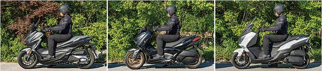 포르자는 상대적으로 운전자의 무게중심이 차체 중앙에 가깝고 발판의 높이가 살짝 낮다. 엑스맥스와 제트플러스는 유사한 포지션이지만 제트플러스의 핸들이 몸에 더 가깝고 차체전반적인 크기가 크다. 반면 발착지성은 제트플러스 가장 편안하게 닿았다