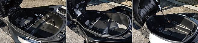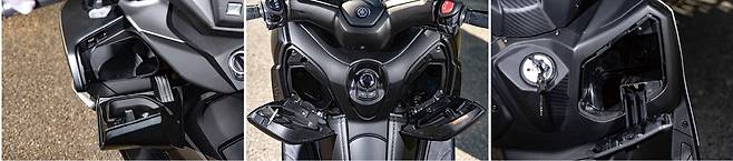 포르자의 가장 큰 장점은 운전자의 만족도에 많은 신경을 쓰고 있다는 점이다. 특히 가변 윈드실드는 탁월하다. 동급에서 유일한 사양이기에 이것만으로도 포르자350을 선택하는 이유로 충분할 정도로 확실한 차별점이다. 전동윈드실드는 작동 폭이 180mm로 기존 모델대비 40mm 더 큰 폭으로 조절된다. 최저와 최고 높이에 따라 체감되는 주행풍도 완전히 달라서 상쾌하게 바람을 맞으며 달리다가도 버튼만으로 실드를 조절해 주행풍을 피해 쾌적하게 주행 할 수 있다. 테스트 중 날이 덥다가 춥다가 비까지 오는 등 변덕이 심했는데 다양한 환경 변화에도 버튼만 눌러 쉽게 대응할 수 있으니 만족도가 크게 높아진다. 시트 밑 수납공간은 총 48리터로 헬멧 2개가 수납이 가능한 구조지만 복잡한 형상 때문에 실제 용량을 다 활용하지는 못하는 느낌이다. 다만 기본적으로 파티션을 제공해 내부를 효율적으로 사용하게 한 점은 좋다. 인상적이었던 점은 좌측 앞에 마련된 이너박스다. 그 깊이가 상당히 깊어 4.5리터의 용량을 확보하고 있어 어지간한 음료수는 병째로 수납할 수 있을 정도로 깊다. 내부에 C타입 USB를 마련해 활용도를 높였다. 입구가 조금 좁아 두꺼운 글러브를 끼우고 사용하기에는 조금 어려웠다는 단점도 있지만 바로 손닿는 곳에 넉넉한 수납공간이 있다는 점은 무척 편리했다.