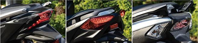 테일램프 역시 세 모델 모두 개성있는 모습이다. 포르자는 풀LED를 사용하며 엑스맥스와 제트플러스는 방향지시등은 벌브타입이다.