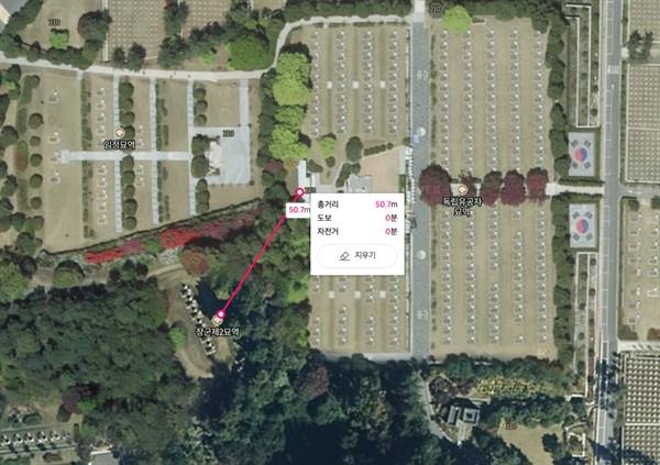 | ▲ 국가공인 친일파 신태영과 이응준이 잠든 서울현충원 장군2묘역에서 무후선열제단까지의 거리는 직선으로 50m에 불과하다. |