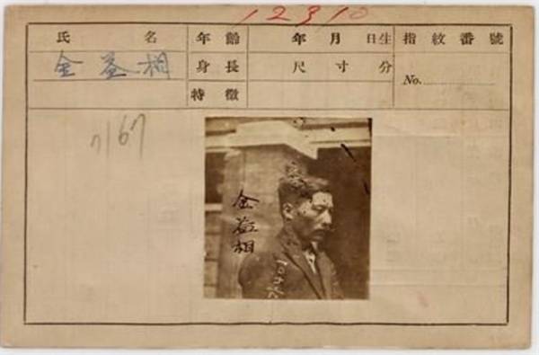 | ▲ 독립운동가 김익상을 수배하기 위하여 일제가 작성한 카드이다. |