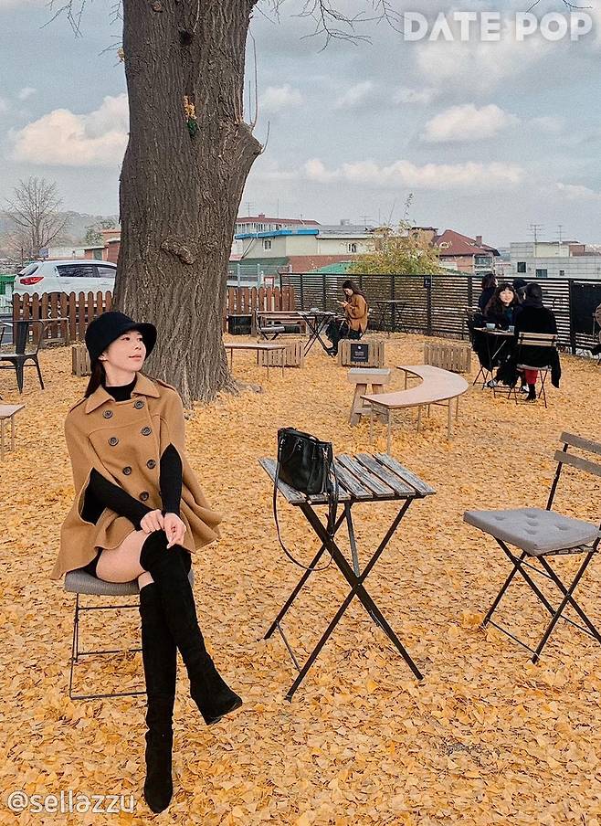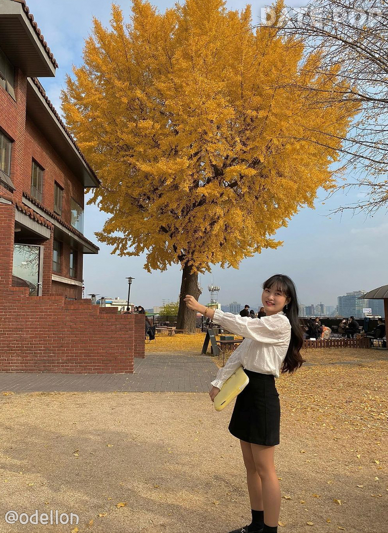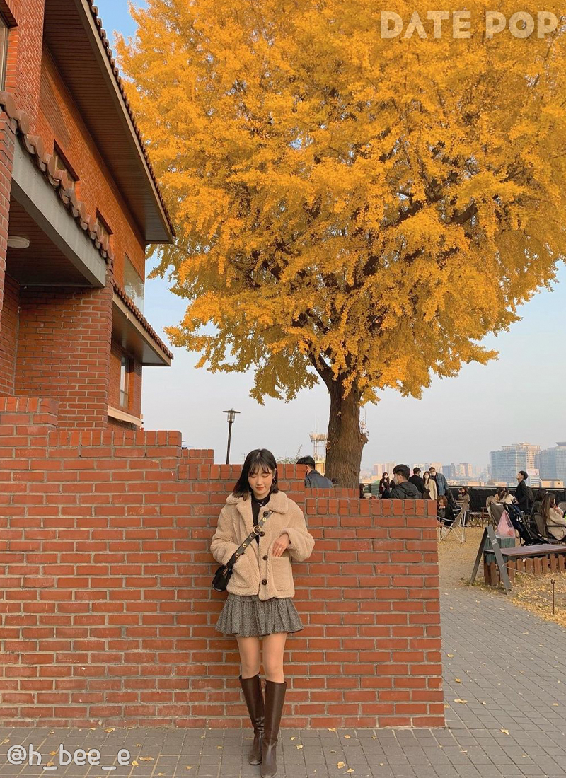나무 근처 자리와 카페 옆쪽 빨간담벼락이 인생샷 스팟이에요. 11월에 은행나무가 만개했을 때가 가장 예쁘답니다. 은행잎이 어느정도 떨어졌을 때도 예뻐서 11월 중 아무때나 가도 좋을 것 같아요.