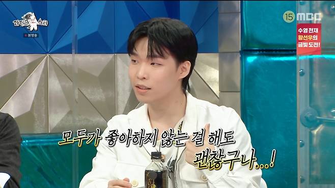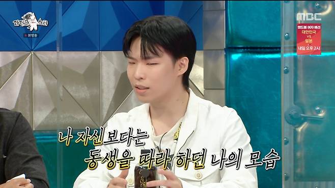 이날 동생 이수현 없이 혼자 '라스'에 출격한 이찬혁은 "6초 정도 사운드를 비우고 싶다. 타이트한 시간이 오랜만이라 제 페이스로 가져와야 한다. 요즘 트렌드는 조곤조곤한 것도 괜찮잖냐"면서 독보적 캐릭터를 드러냈다. "수현이랑 나온 게 약 5년 전"이라는 그는 "그때와 지금은 엄청 달라졌다"고 자부했다. 과거 출연 분을 군대에서 많이 봤는데 부끄러워 하는 모습 때문에 놀림을 많이 받았다고.