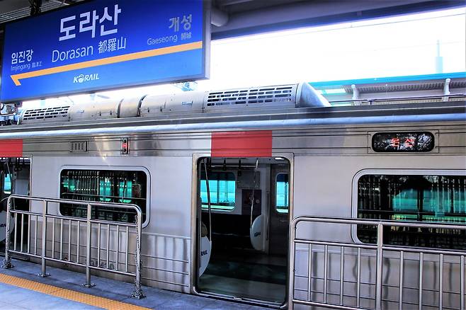 민통선을 넘은 열차의 풍경은 여느 전철과 비슷하다. 창 바깥 풍경에 인적이 유독 없다는 것을 빼면 경춘선이나 중앙선 같은 노선의 교외 구간과 비슷한 느낌이다. 임진강역을 넘어 5분 남짓을 가자 종착역인 도라산역임을 알리는 안내방송이 나온다. 비로소 민통선을 넘어 휴전선 가까이까지 왔음이 실감난다.
