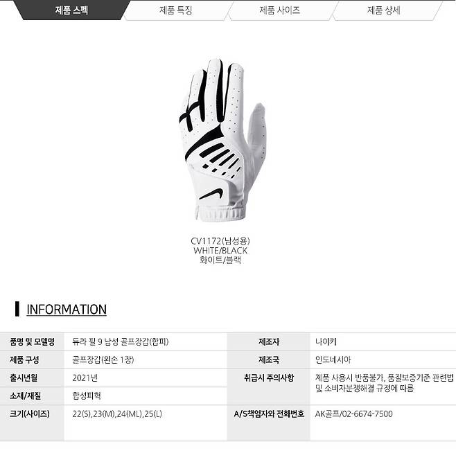 나이키 듀라필 골프장갑(CV1172)