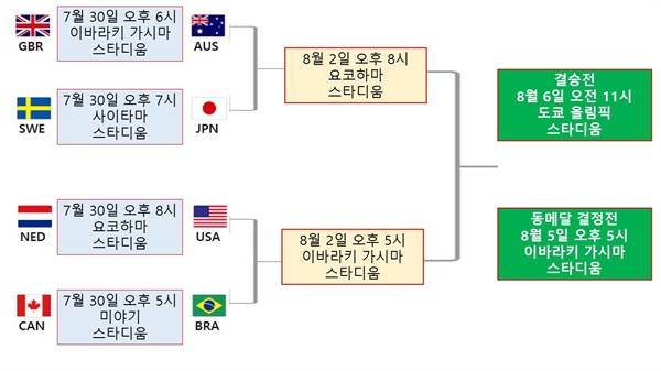 | ▲ 2020 도쿄올림픽 여자축구 8강~결승 대진표 |