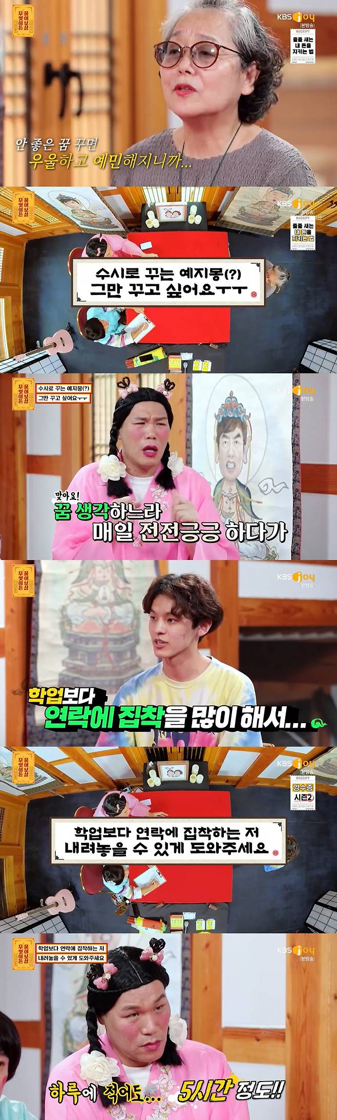 다른 의뢰인은 의뢰인은 "예지몽을 꾸곤 하는데, 안 좋은 꿈을 꾸면 우울하고 예민해진다. 그만 꾸고 싶다"라고 말했다. 이어 예지몽 적중률이 무려 90%에 달한다면서 "짧게는 며칠 안에, 길게는 1~2년 안에 (꿈대로) 일어난다"라고 설명했다.